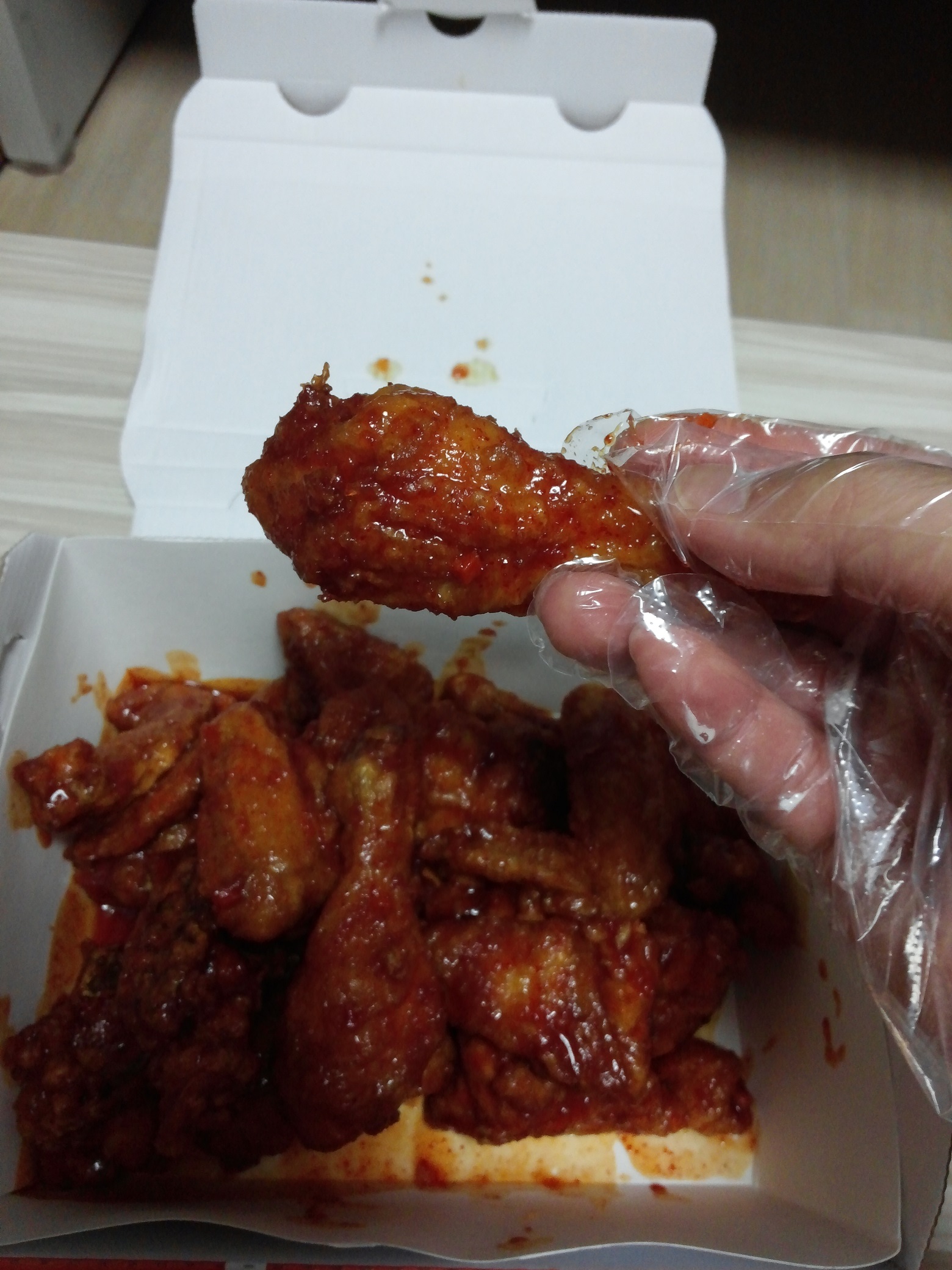 비닐장갑 손으로,  닭 뜯으실줄 아시는 군요ㅎ