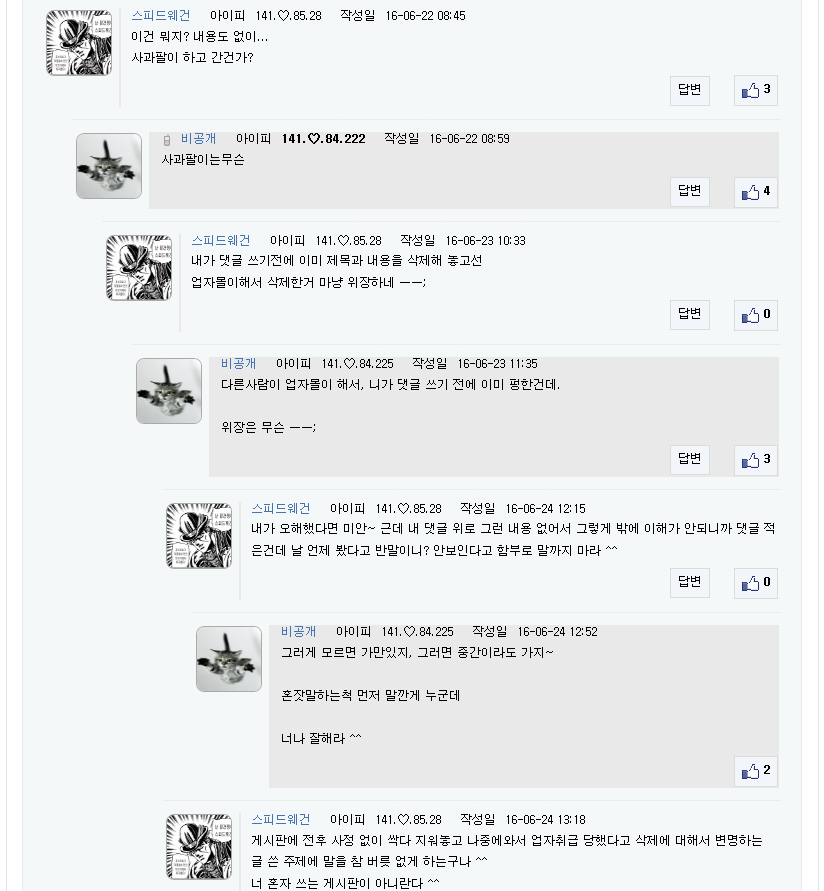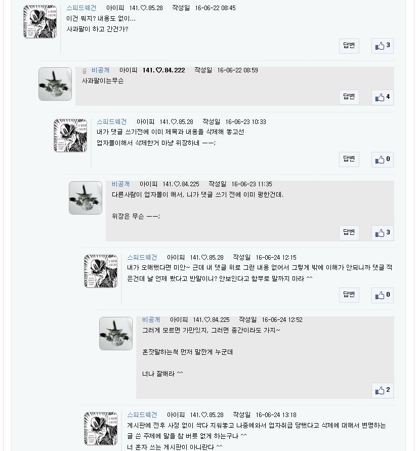 그리고 저위에 선동한 동일 아이피로 남긴글