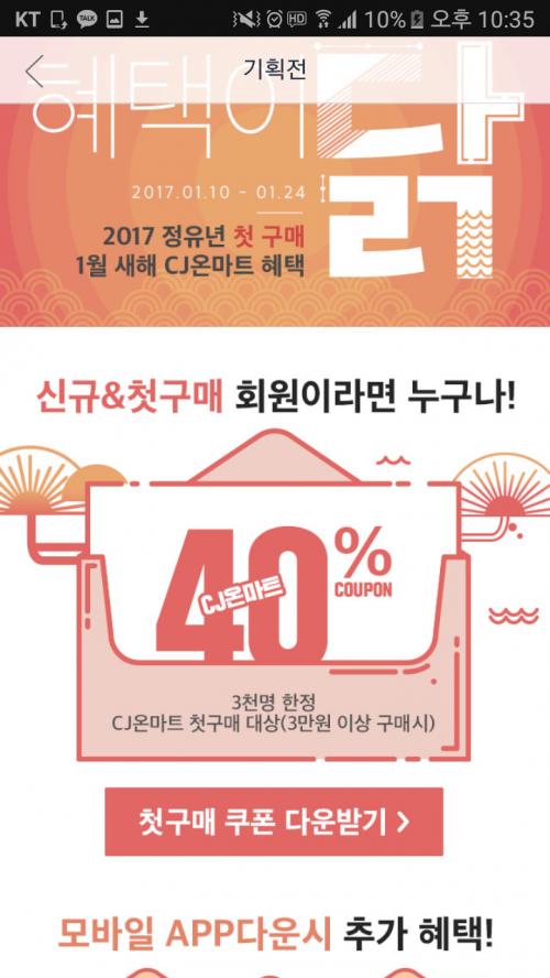 Cj온마트 40퍼쿠폰 떴네요 > 자유게시판