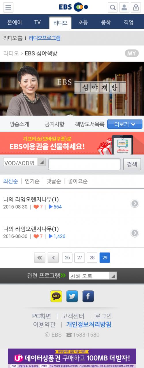 ☞ http://m.ebs.co.kr/ebsnightbook?c.page=29&hmpMnuSno=17&ipblock=N&searchKeyword=&pageNumber=1&nEvt=N&