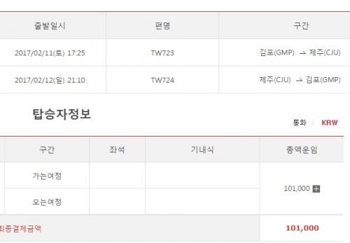 일요일 밤에 돌아오는 편도는 74,000원 비싸네요. 그래서 왕복 101,000원ㅠ