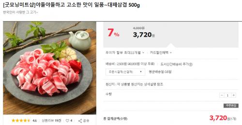 네이버 대패삼겹 으로 검색후 낮은가격 정렬하면 나옵니다.