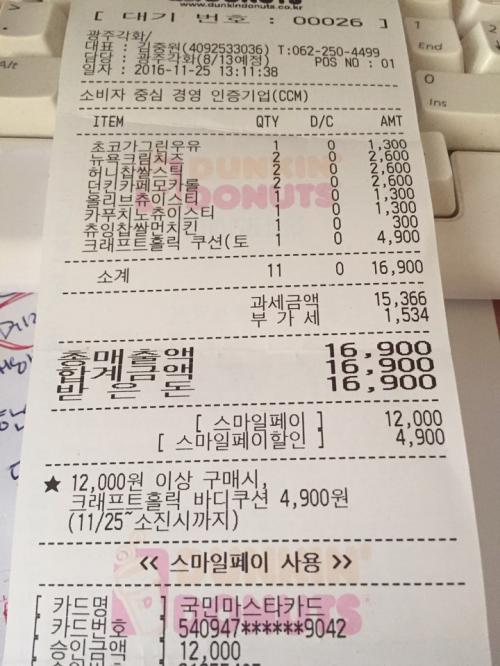 계산은 빵 12000원 + 인형 4900 한다음 스마일페이 결제하면 자동할인되네요 ^^