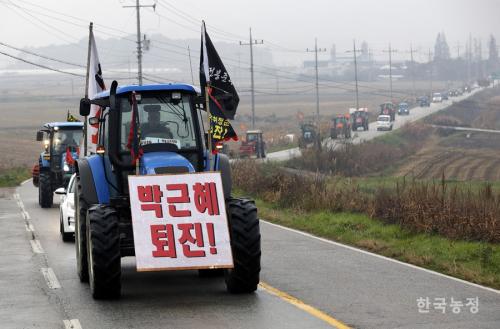 박근혜 대통령 퇴진을 촉구하며 트랙터를 몰고 전국에서 달려온 농민 천여 명이 오늘 서울 진입을 앞두고 있는데요. 농민들은 청와대 앞까지 행진하겠다는 계획이지만, 경찰은 허용하지 않겠다는 입장이라 긴장이 고조되고 있습니다 트랙터를 몰고 며칠째 상경 중인 전국농민회총연맹의 최형권 조직위원장 만나봅니다.