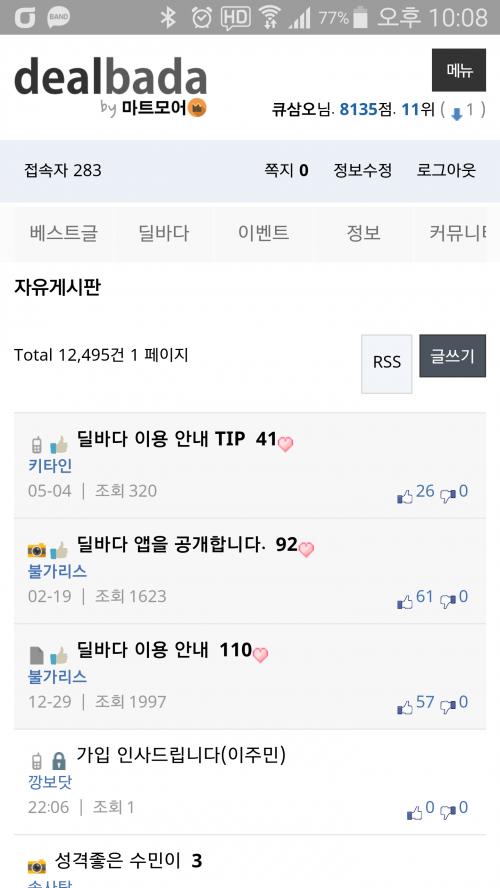 그런데, 큐삼오님 화면에서는
