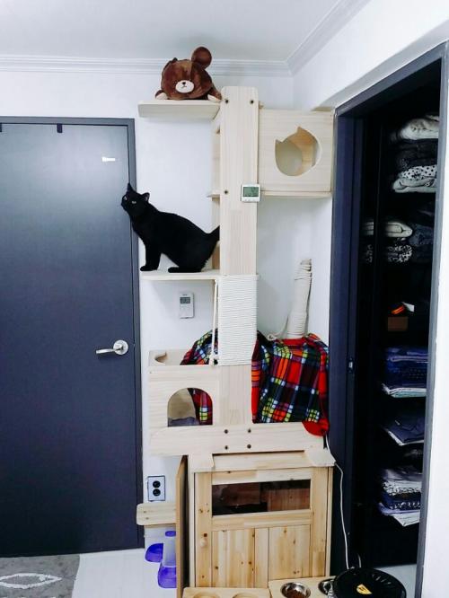 아래는 화장실이고.... 모찌는 캣타워를 잘 안올라가는데 이건 좋은지 계속 올라가서 놀더라구요 ㅎㅎ