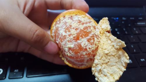 껍질과 과육이 완전하게 밀착되어 있고, 거뭇한 점까지....엄청 달거 같아요 | ||