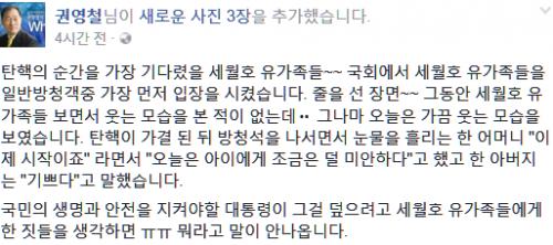 세월호 부모님들의 얼굴을 보면서 저희 부모님이 떠오르네요. 방금전까지 가결되서 다행이고 탄핵 바로 전에 하자있는 민정수석을 앉히고 직무정지 된것을 보고 욕하고 그랬는데..... 이분들보니 왈칵 눈물이 납니다ㅠ