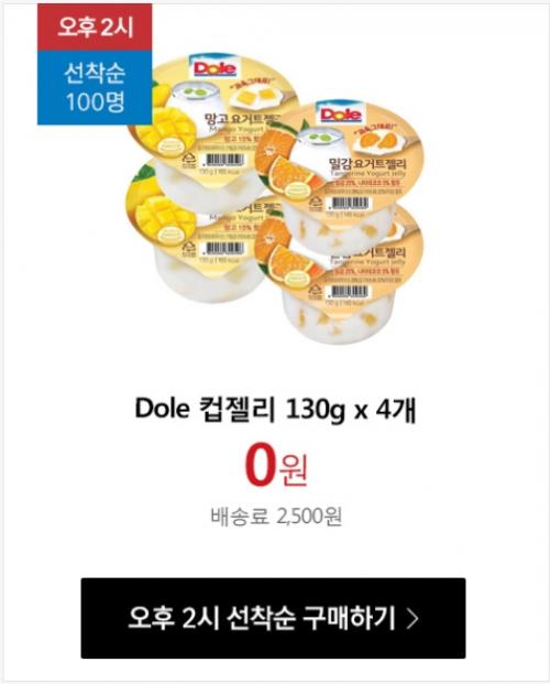 [14시오픈] Dole 컵젤리 130g x 4개 (2,500원/무료) 선착순 100개