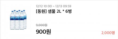 [10시 오픈] 삼성카드 쇼핑 앱 동원샘물 2L X 6병 (900원/무료) 선착순 2000개
