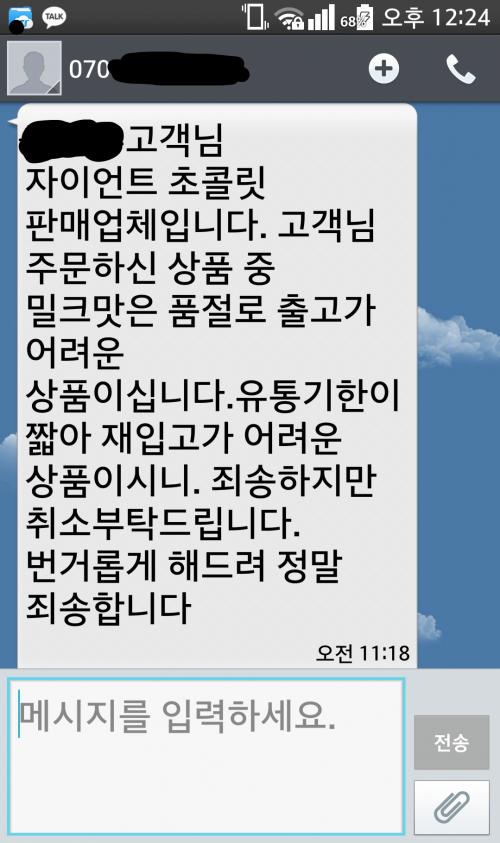 오늘 그쪽업체에서 문자가왔네요..