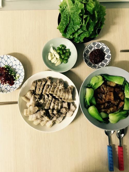 냉장고에 청경채가 보여 수육하는날은 동파육도 같이 합니다.