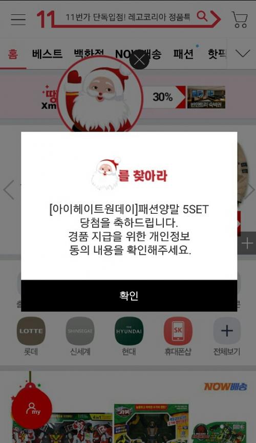 11시땡하고 두번째산타에서 됐어요 | ||