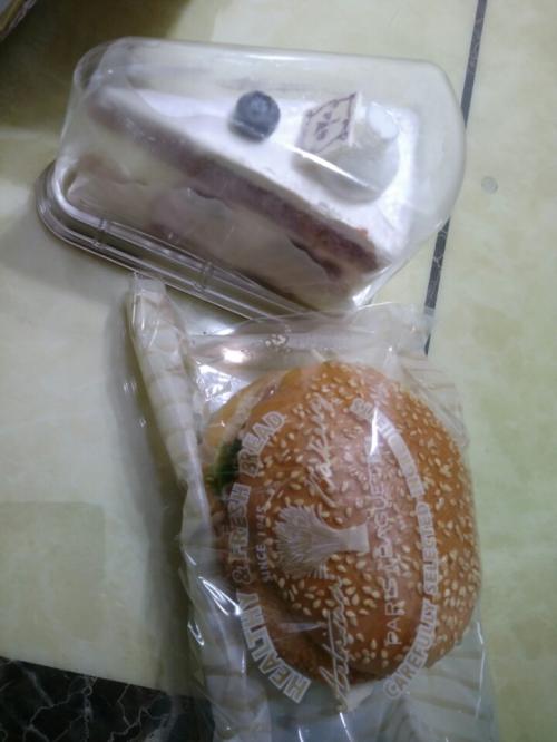 아들이 좋아하는 조각케익과 햄버거 2개사왔어요