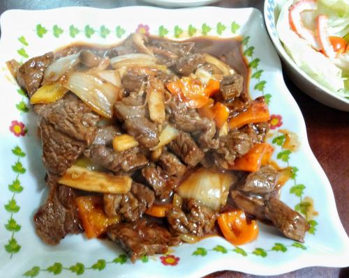 더하기마트 갔다가 고기 할인하길래 샐러드와 어제 선물 받은 와인과 함께 먹었네요~