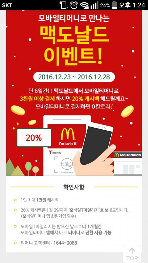 교통카드땜에 항상쓰는데 이벤트란에 보이네요28일까지라길래 빅맥셋트하나 먹고 왔습니다