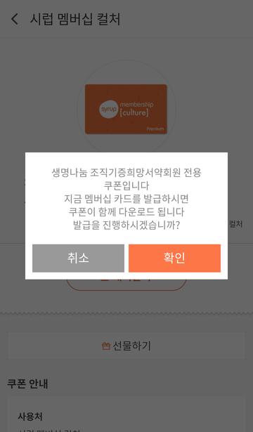 시럽 앱에서 컬쳐 멤버쉽으로 검색하면 나오는 쿠폰 중에