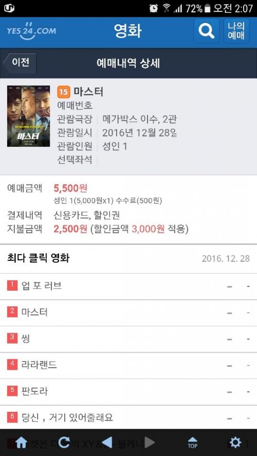 좌석없어서 못본 마스터.. 재밌게 보고오세요~ | ||