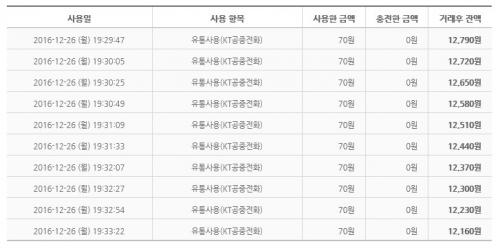 제꺼랑 같이 한 다른 가족 캐시비도 조회해봤는데 공중전화 1건이 비네요. ㄷㄷㄷㄷ