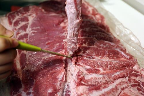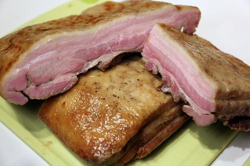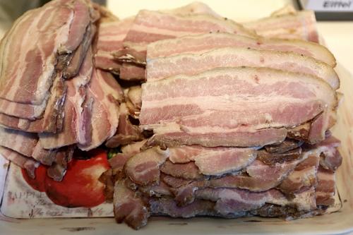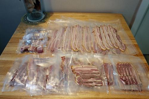 저번주에 트레이더스가서 고기사다가 시즈닝해서 재워놓고, 오늘 깨워서 오븐에 구워서 베이컨 완성했습니다.