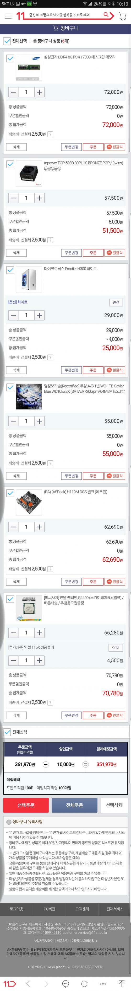 아...왜 굳이 11번가에서 하시나요. 잠시만 기다려보세요. 견적 짜드리겠습니다. ㅠㅠ | ||