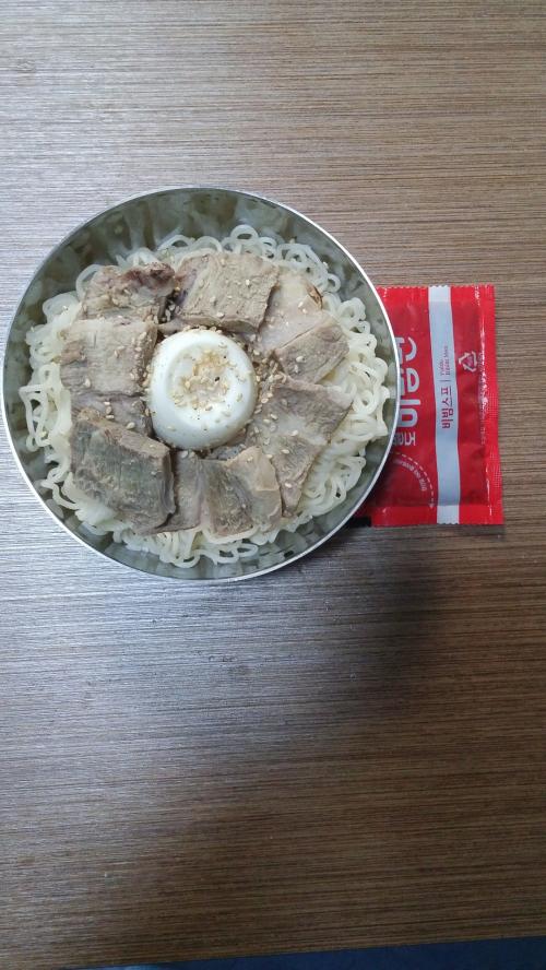 저번에 수육해먹고 남은거 냉장고에 넣어놨어요