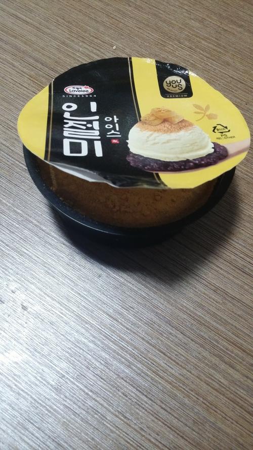 발굴을해보니 표면층은 인절미 떡에 콩가루가 뿌려져있고 안쪽은 인절미 맛이나는 바닐라아이스크림이 있네요