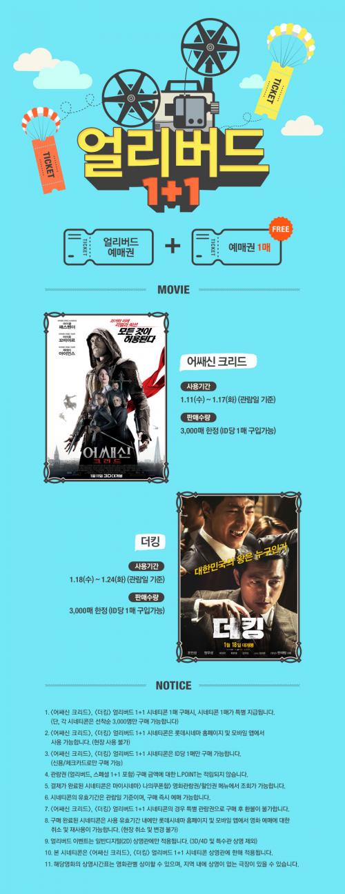 어쌔신 크리드 11일개봉인데, 관람권은 1/4~1/8일까지라네요 문제가 있어보이니 확인하세요 | ||