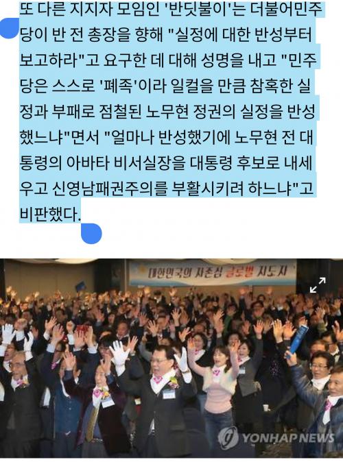 스스로 폐족이라 하면서 노무현 정권의 아바타를 대선 후보로 내세워서 뭐하냐고 뭐라고 하는데...