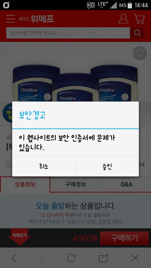 링크받아 연결시키면 인증서문제 저렇게떠여