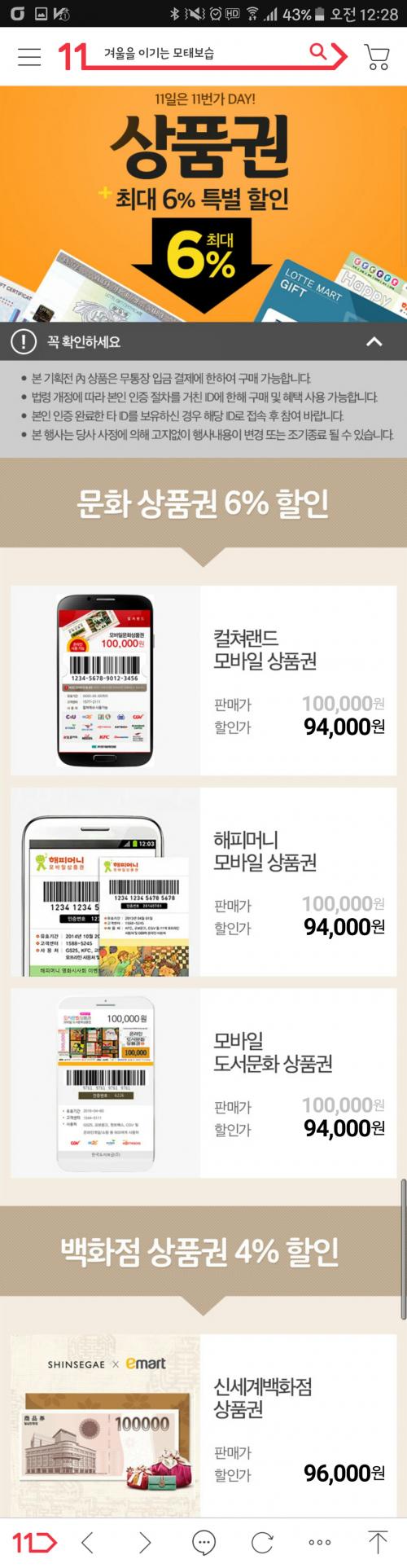 상품권 업체야 판매처가 필요할테고 카드 결제 안되면 판매량이 줄테니.. 새로운 루트가 조만간 생기길 기다려야죠.. 안녕 11번가 | ||