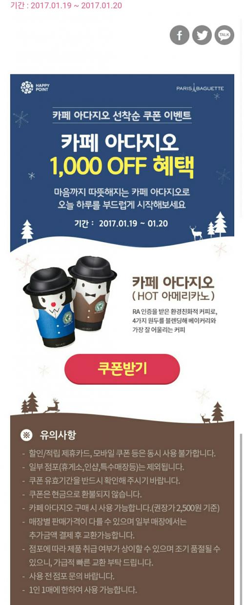 해피포인트 고객 특별 혜택! 카페 아다지오 1,000 OFF 혜택