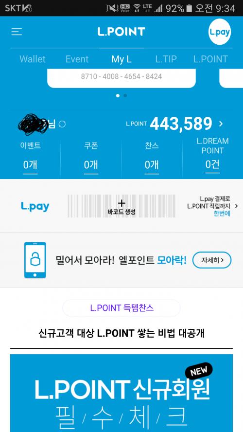 L포인트 롯데백화점 이나 롯데마트에서
