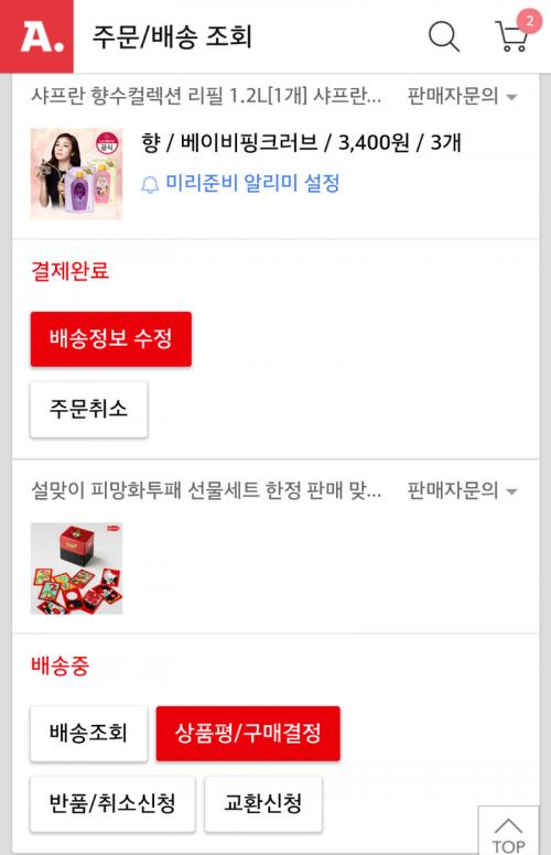 문자로 송장번호 뜨길래 배송해주나 들어가봤더니 샤프란은 결제완료상태고 같이시킨 화투는 배송중 나오네요.