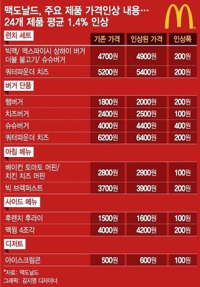 맥도날드 내일부터 가격 인상되는 품목이래요