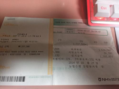 처음으로 3등된건 영수증 안챙겨서 없구요. 14년도에 3등된건 영수증 챙겨놔서 인증해봅니다 .
