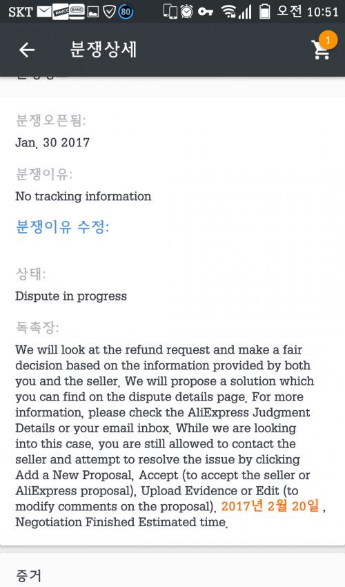 일반적으로 구매자보호기간 끝나기전에 물건을 못받으면 디스풋을 겁니다만 이번에는 구정끼여서 몇시간 넘기고 디스풋을 걸었습니다.