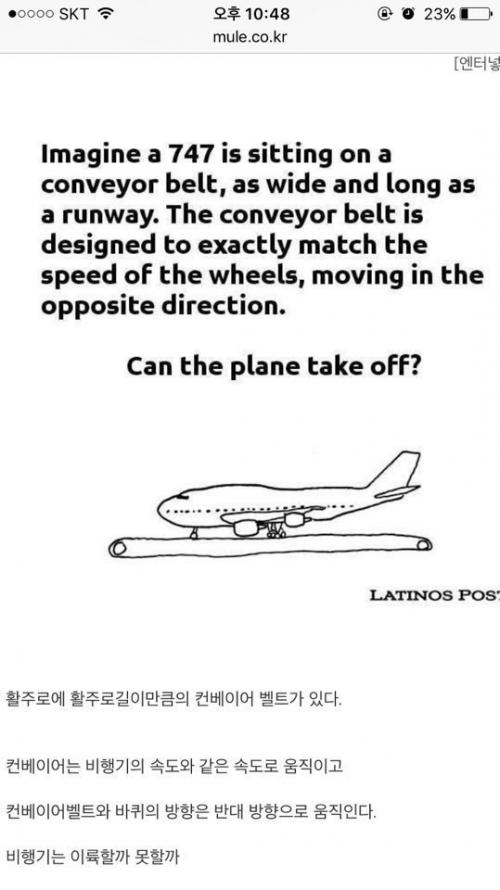 컨베이어벨트가 비행기의 속도로 움직인다는 것 자체가 말장난임. | ||