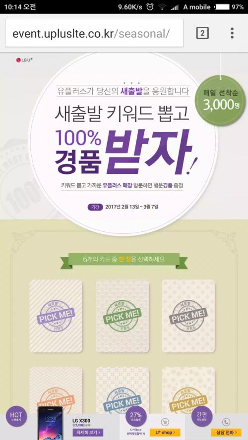 ※ 주의사항: 1인당 1번만 가능...회선 여러개로 돌려도 1개만 수취하실수 있습니다..