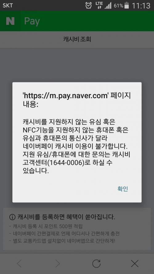 저도 현재 캐시비 사용중인데 그런문구가 뜨길래 한번 재부팅후 다시 해봤더니 정상적으로 되더라구요,, | ||