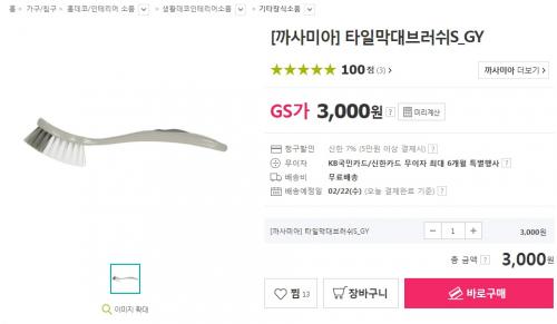 타일청소솔 - 3,000원 http://www.gsshop.com/prd/prd.gs?prdid=22409724&lseq=361551