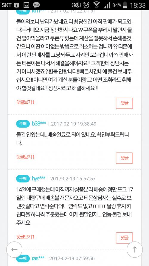 계속 배송이 안되 해당 제품 티몬게시판에 가보니 난리도 아닙니다.