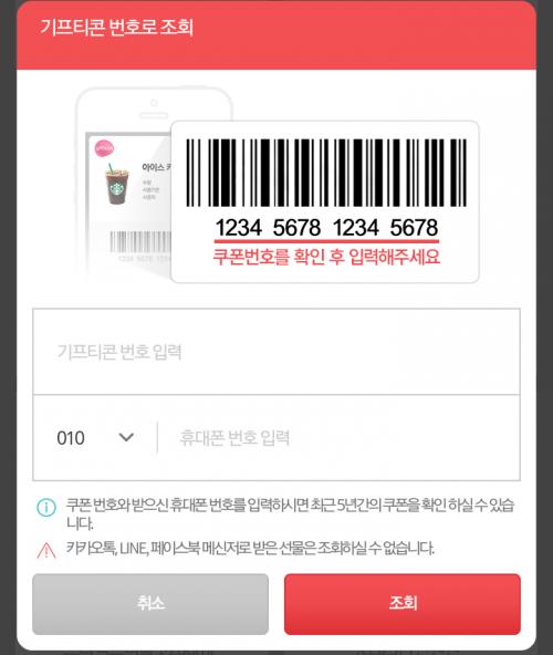 앱 선물함 ㅡ 살살 내리다보면 오른쪽 아래 나오는 번호로 조회 클릭