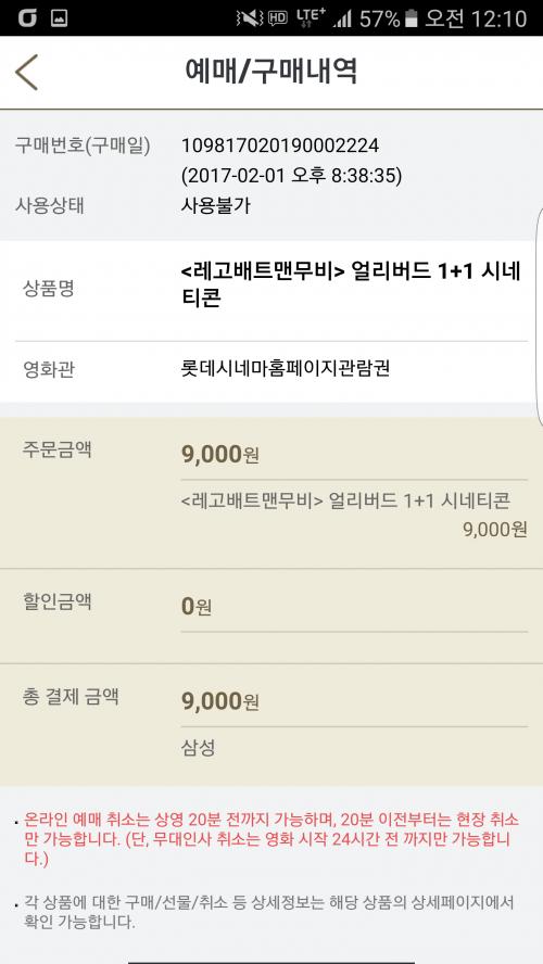 저건 영화관람권을 구매한 내역(영수증 개념)일 뿐이라
