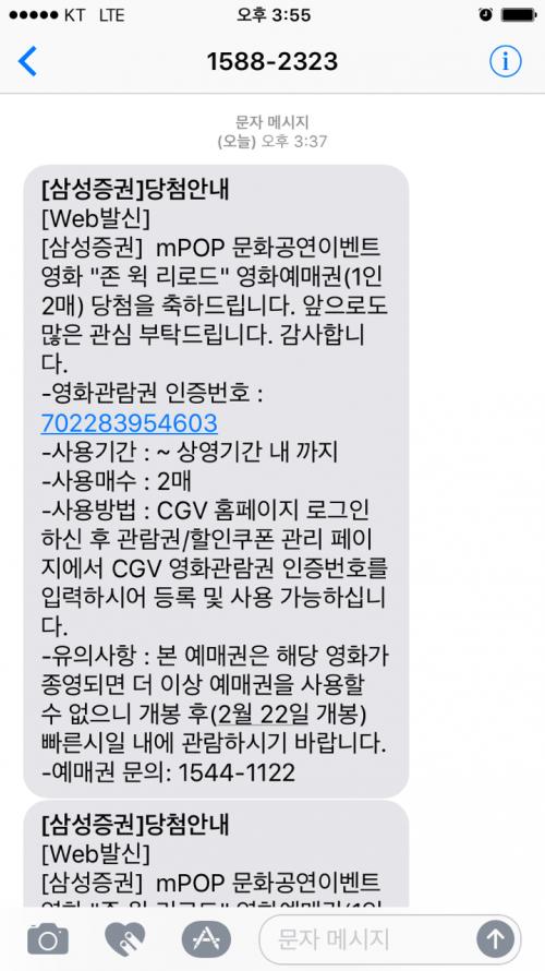 삼성증권은 아닌데 다른이벤트로 CGV 1인 2매 당첨되서 받은적 있는데요.