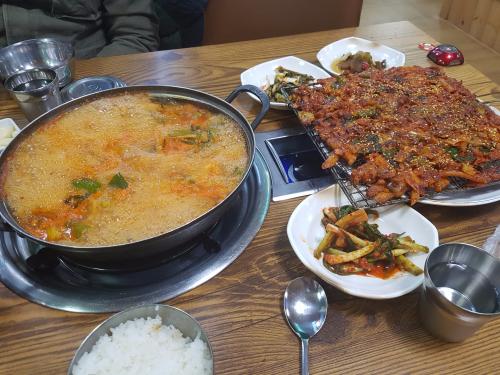 돼지찌개가 뭔가 찾아봤더니 고추장찌개에 돼지고기를 넣은것이군요! 처음 알았네요. | ||