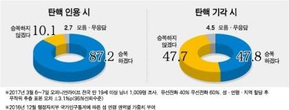 10. 승복할 준비, 되셨습니까? → 탄핵 인용시 ‘87%가 승복하겠다’(불승복 10.1%), 기각시 ‘승복하겠다 48%’(불승복 48%). 한국일보- 오피니언라이브, 6~7일 전국 1,009명 조사.(한국)▼