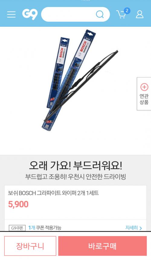 보쉬 BOSCH 그라파이트 와이퍼 2개 1세트 5,900원 - G9모바일
