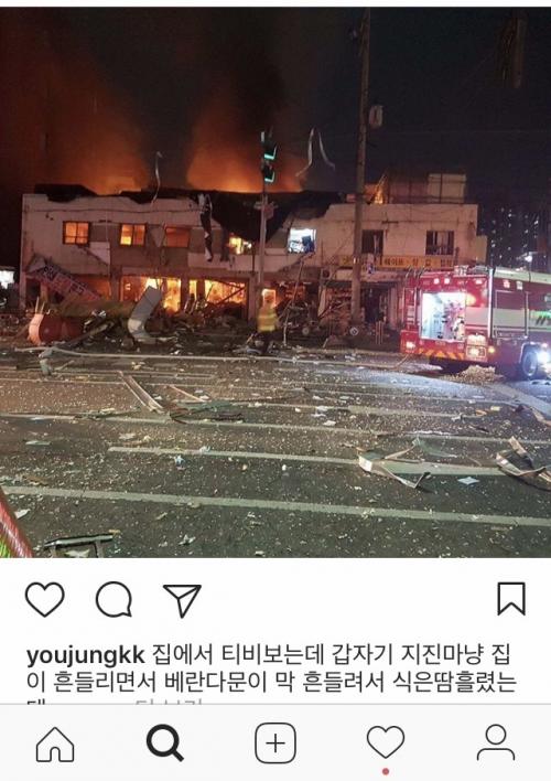 헐 2층은 사람 사는데인것 같기도 한데.. 피해가 없길 바랍니다. | ||
