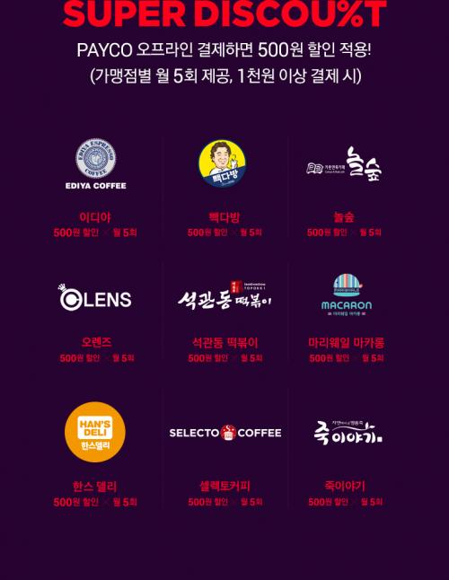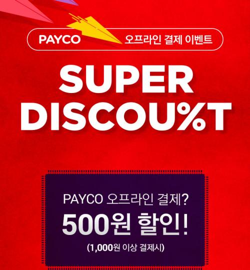 페이코 오프라인 1000원 이상 결재시 500원 할인 (가맹점별 월5회)